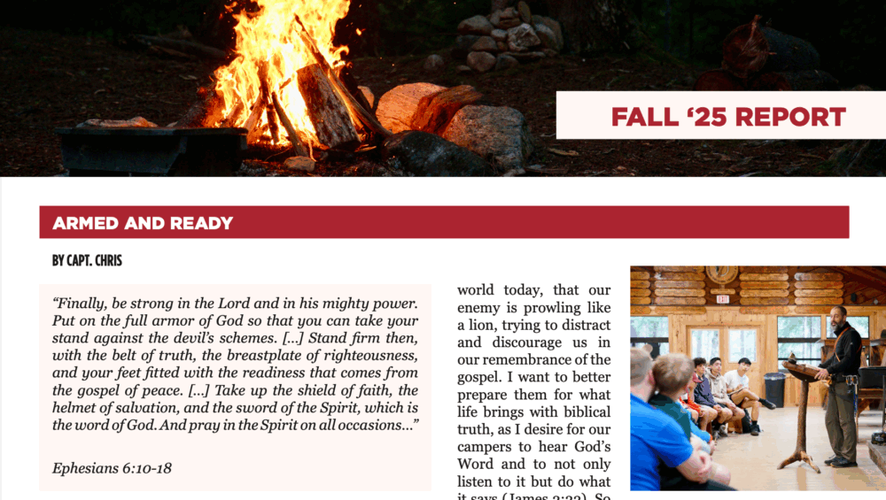 This summer, we are again so excited to minister to the boys that come to Northern Frontier Camp! We want to see more boys come to NF to share God’s love and the good news of Gospel, take them on adventures, foster lifelong friendships, and ignite a spark to set their hearts on fire to […]
