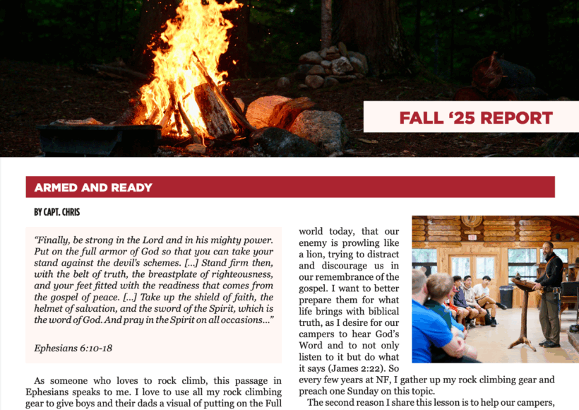 Northern Frontier provides programs that guide groups of boys and young men through adventure-packed, action-filled experiences that draw young people closer to God… and equip them to be leaders of tomorrow. In addition, through programs designed specifically for them, Northern Frontier seeks to nurture and develop the relationship between fathers and sons.
