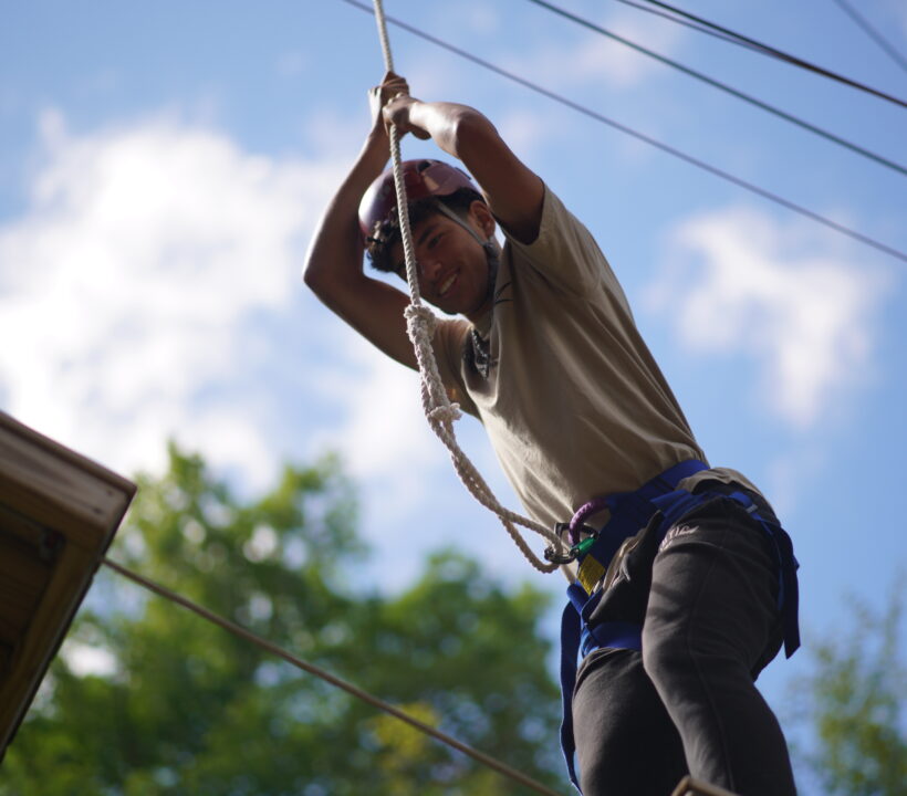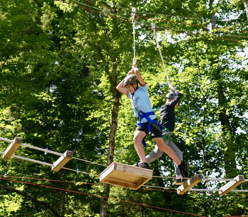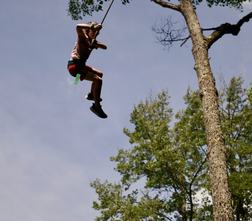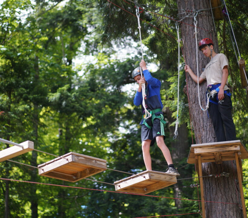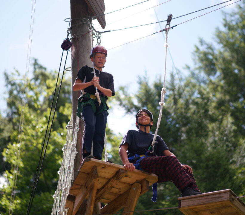 The high ropes course takes the spirit of adventure to new heights. Set high above the ground, campers navigate elevated obstacles and challenges securely harnessed. This exhilarating activity builds physical strength and agility and promotes essential life skills such as problem-solving, communication, and teamwork. Campers face various challenges, from swinging between platforms to traversing tightropes, creating an environment that encourages collaboration and mutual support.